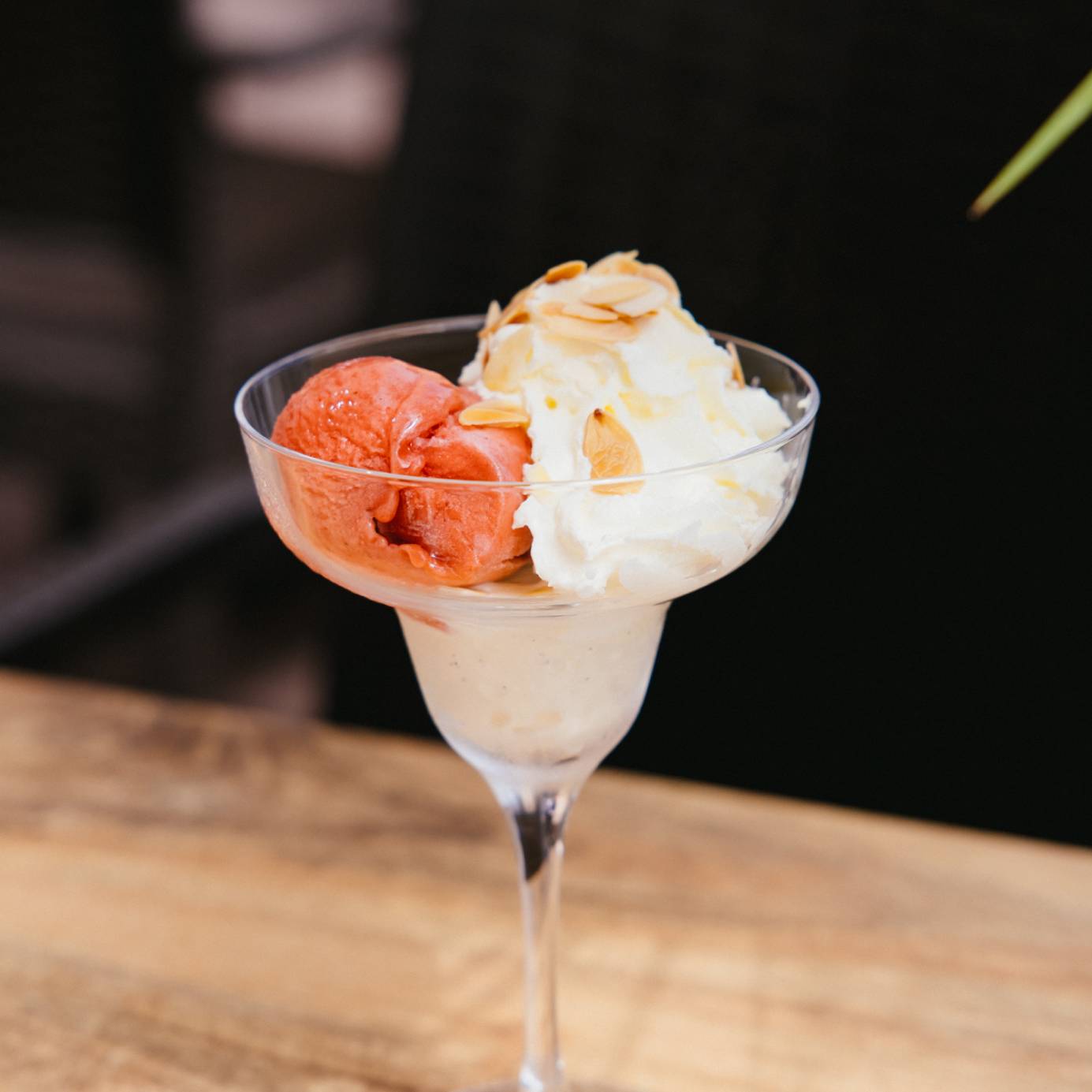 2 parfums au choix: chocolat noir de Tanzanie, citron, fraise, vanille de Madagascar, caramel beurre salé, lait de coco des Philippines, vanille - fruits confits - kirch + tuile aux amandes et chantilly